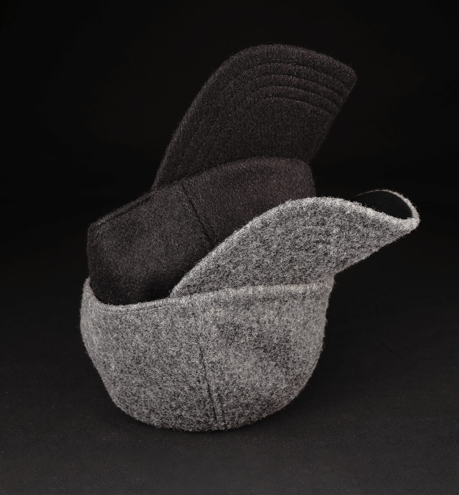 No Logos. Just a clean look that doesn't turn your forehead into a billboard. Fabric. 65% recycled wool, 35% recycled mix fibers.