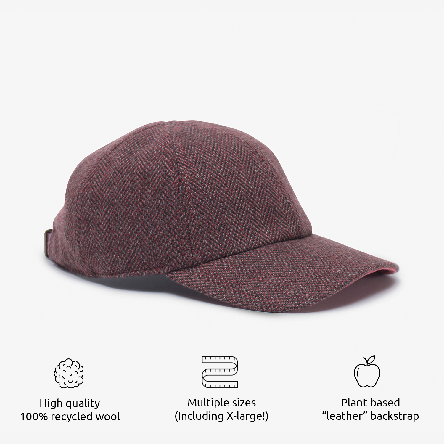 No Logos. Just a clean look that doesn't turn your forehead into a billboard. Fabric. 65% recycled wool, 35% recycled mix fibers.