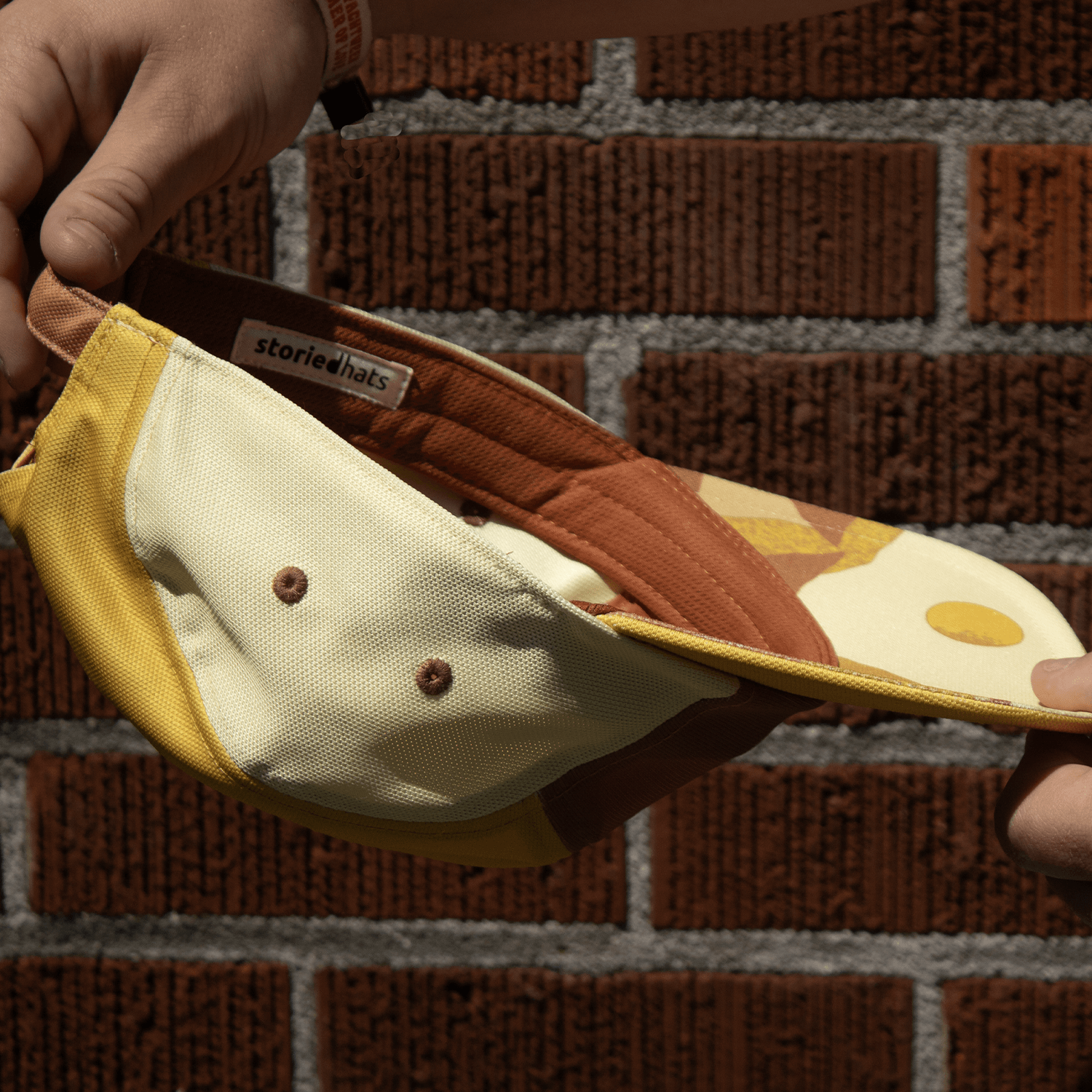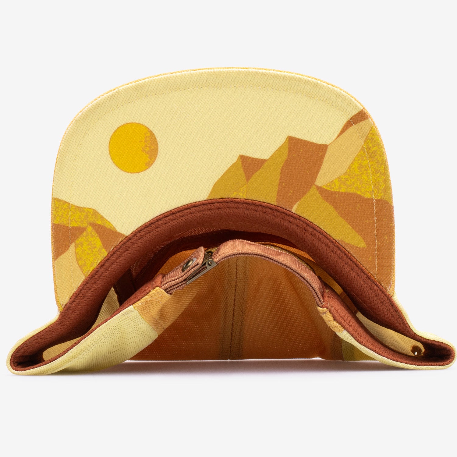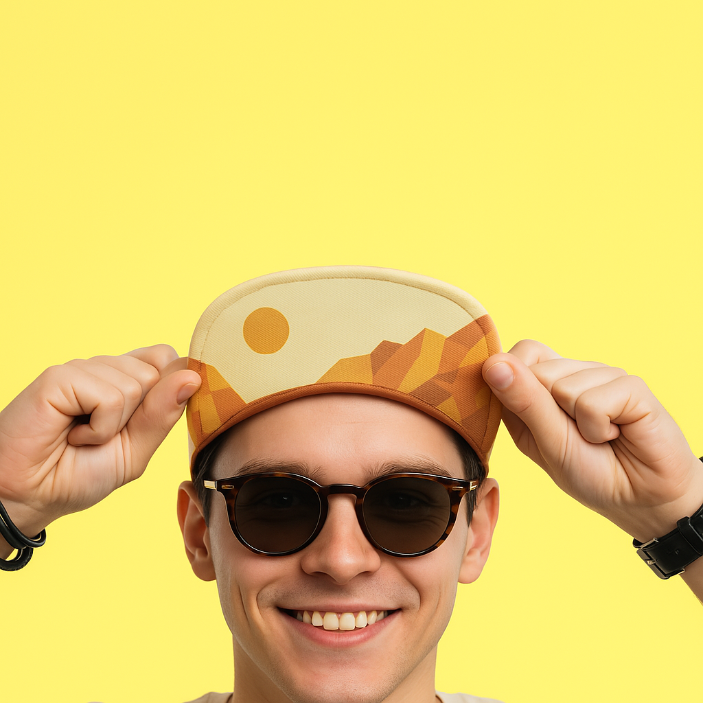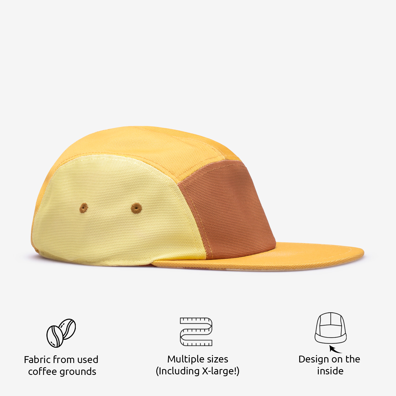 Versatile hat made from used coffee grounds turned into activewear fabric. Desert sunset design on the inside.