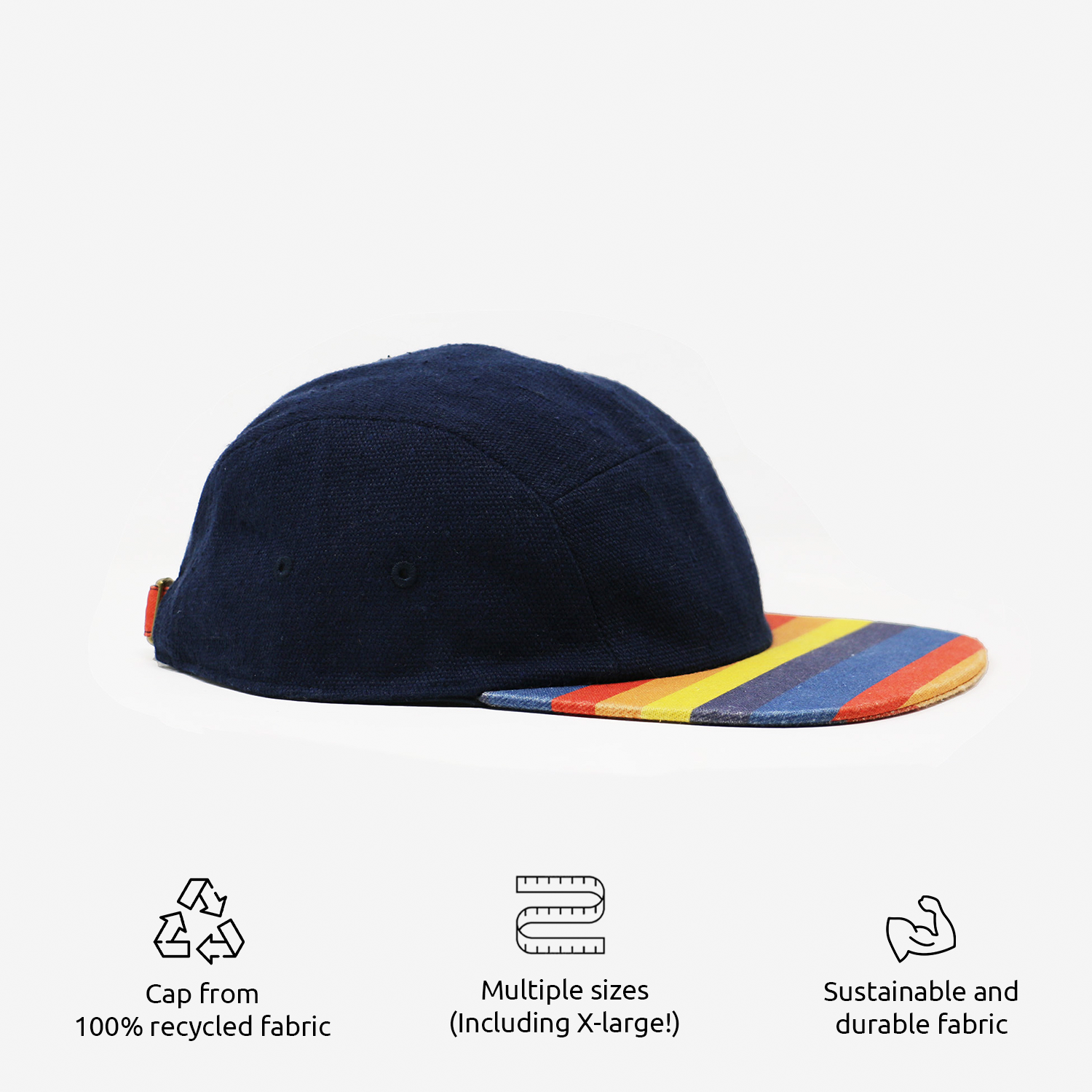The cap is a premium cotton canvas made from 100% recycled fabrics. It feels great and is built to last. Medium weight.
